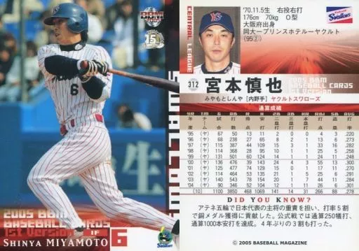 Nombre comercial en japonés: BBM/レギュラーカード/BBM2005ベースボールカード1st 312 : 宮本慎也「東京ヤクルトスワローズ」