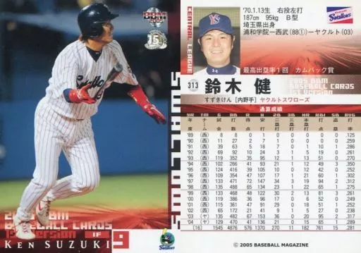 Nombre comercial en japonés: BBM/レギュラーカード/BBM2005ベースボールカード1st 313 : 鈴木健「東京ヤクルトスワローズ」