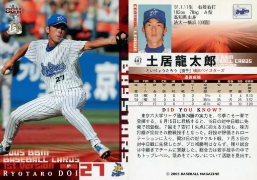 Nombre comercial en japonés: BBM/レギュラーカード/BBM2005ベースボールカード1st 462 : 土居龍太郎「横浜ベイスターズ」