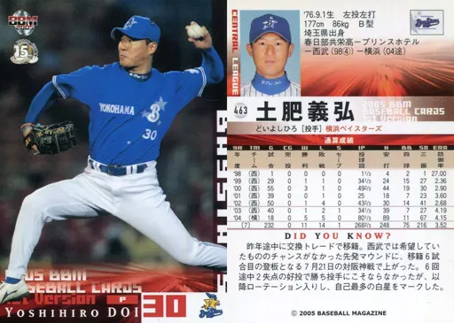 Nombre comercial en japonés: BBM/レギュラーカード/BBM2005ベースボールカード1st 463 : 土肥義弘「横浜ベイスターズ」