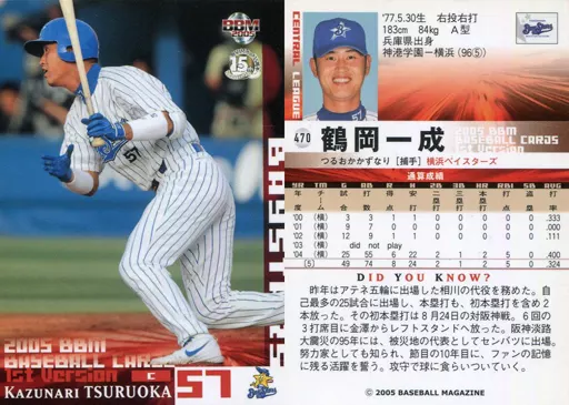 Nombre comercial en japonés: BBM/レギュラーカード/BBM2005ベースボールカード1st 470 : 鶴岡一成「横浜ベイスターズ」
