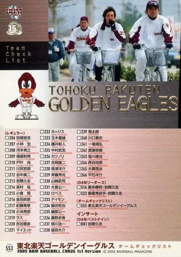 Nombre comercial en japonés: BBM/レギュラーカード/BBM2005ベースボールカード1st 553 : 東北楽天イーグルスチェックリスト