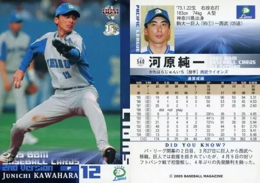 Nombre comercial en japonés: BBM/レギュラーカード/BBM2005ベースボールカード2nd 560 : 河原純一「埼玉西武ライオンズ」