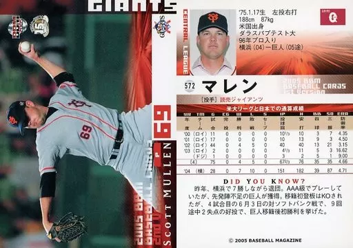 Nombre comercial en japonés: BBM/レギュラーカード/BBM2005ベースボールカード2nd 572 : マレン「読売ジャイアンツ」