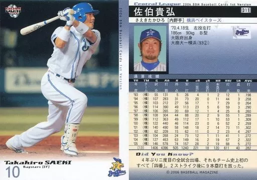 Nombre comercial en japonés: BBM/レギュラーカード/BBM2006ベースボールカード1st 311:佐伯貴弘「横浜ベイスターズ」