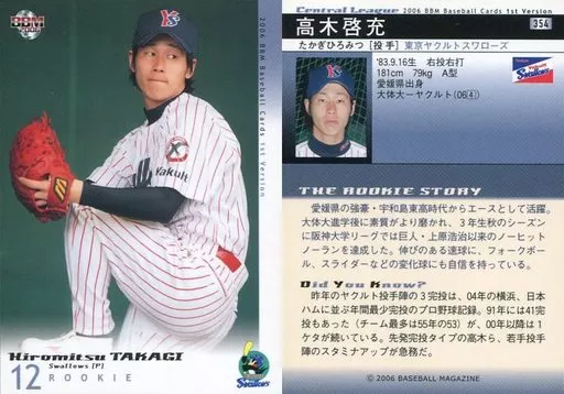 Nombre comercial en japonés: BBM/レギュラーカード/BBM2006ベースボールカード1st 354:高木啓充「東京ヤクルトスワローズ」