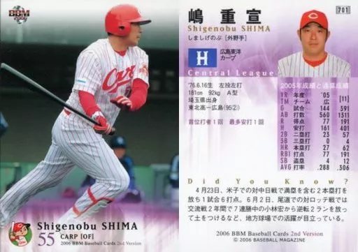 Nombre comercial en japonés: BBM/レギュラーカード/BBM2006ベースボールカード2nd 701:嶋重宣「広島東洋カープ」