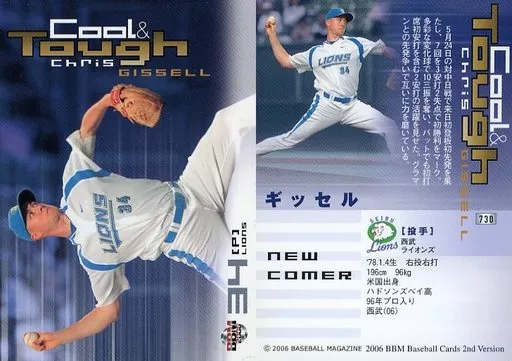 Nombre comercial en japonés: BBM/レギュラーカード/BBM2006ベースボールカード2nd 730:ギッセル「埼玉西武ライオンズ」