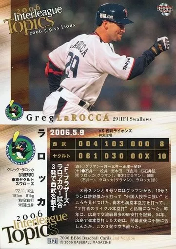 Nombre comercial en japonés: BBM/レギュラーカード/BBM2006ベースボールカード2nd 796:ラロッカ「東京ヤクルトスワローズ」