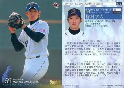 Nombre comercial en japonés: BBM/レギュラーカード/BBM2007ベースボールカード1st 176 : 梅村学人「オリックスバファローズ」