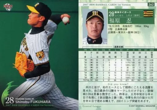 BBM / tarjeta regular / tarjeta de béisbol BBM2007 primo 262 : Shinobu Fukuhara "Hanshin Tigers"