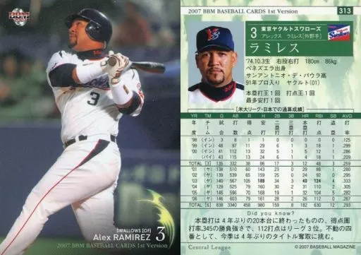 Nombre comercial en japonés: BBM/レギュラーカード/BBM2007ベースボールカード1st 313 : ラミレス「東京ヤクルトスワローズ」