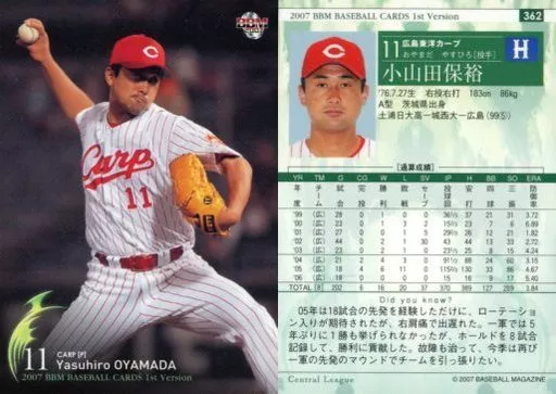 BBM / tarjeta regular / tarjeta de béisbol BBM2007 primo 362 : Yasuhiro Oyamada "Hiroshima Toyo Carp"