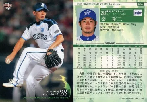 Nombre comercial en japonés: BBM/レギュラーカード/BBM2007ベースボールカード1st 406 : 秦裕二「横浜ベイスターズ」