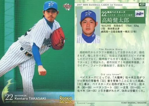 Nombre comercial en japonés: BBM/レギュラーカード/BBM2007ベースボールカード1st 429 : 高崎健太郎「横浜ベイスターズ」