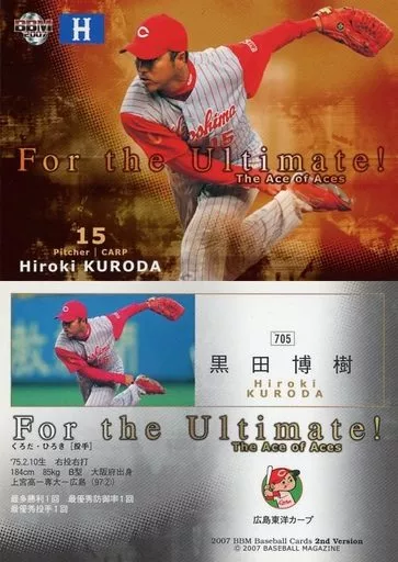 Nombre comercial en japonés: BBM/レギュラーカード/BBM2007ベースボールカード2nd 705 : 黒田博樹「広島東洋カープ」