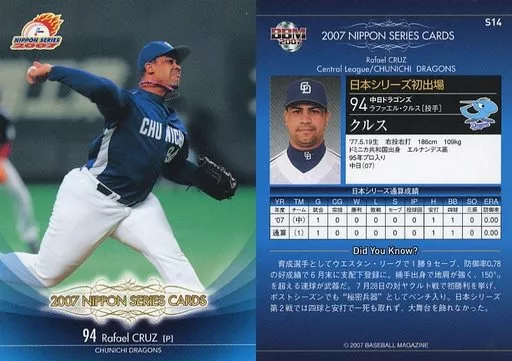 Nombre comercial en japonés: BBM/日本シリーズカード/BBM2007ベースボールカード S14:クルス「中日ドラゴンズ」