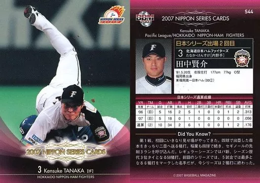 Nombre comercial en japonés: BBM/日本シリーズカード/BBM2007ベースボールカード S44:田中賢介「北海道日本ハムファイターズ」