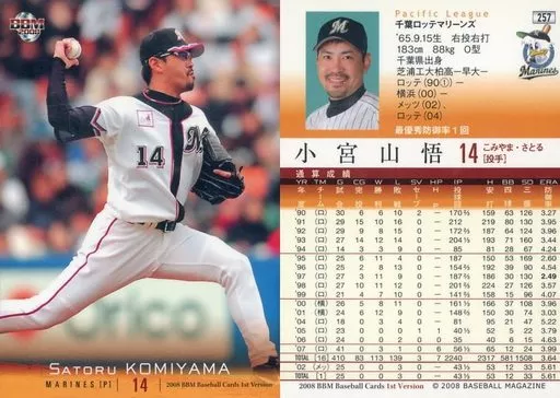 Nombre comercial en japonés: BBM/レギュラーカード/千葉ロッテマリーンズ/BBM2008 ベースボールカード 1stバージョン 257 [レギュラーカード] : 小宮山悟