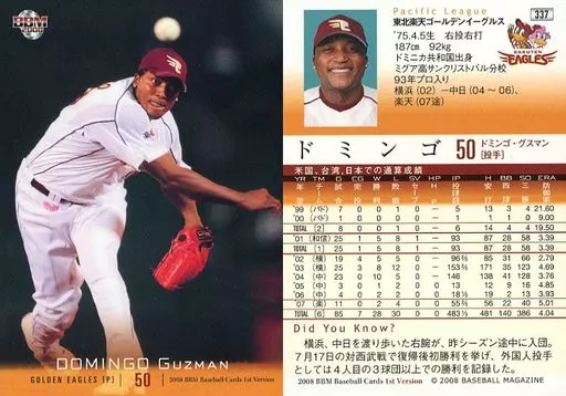Nombre comercial en japonés: BBM/レギュラーカード/東北楽天ゴールデンイーグルス/BBM2008 ベースボールカード 1stバージョン 337 [レギュラーカード] : ドミンゴ
