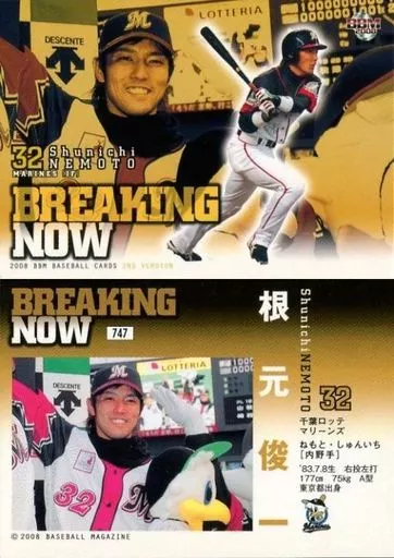 Nombre comercial en japonés: BBM/レギュラーカード/Breaking Now/千葉ロッテマリーンズ/BBM2008 ベースボールカード2ndバージョン 747 [レギュラーカード] : 根元俊一