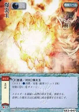 Nombre comercial en japonés: モンスターコレクション/並/戦闘スペル/ゴッドイーターバースト GE3-047[並]:爆炎玉