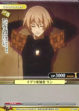 Nombre comercial en japonés: プリズムコネクト/C/キャラクター/黄/咎狗の血 ブースターパック 01-058[C]:イグラ参加者 リン