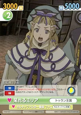 Nombre comercial en japonés: ヴィクトリースパーク/TD/トライアルデッキ「ラストエグザイル‐銀翼のファム‐」 FAM/T07[TD]:呆れるミリア