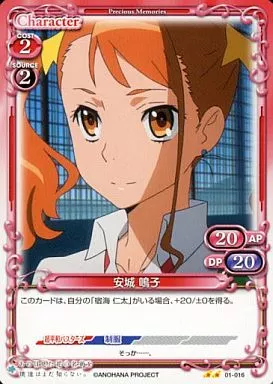 Nombre comercial en japonés: プレシャスメモリーズ/UC/キャラクター/赤/ブースターパック あの日見た花の名前を僕達はまだ知らない 01-016[UC]:安城 鳴子