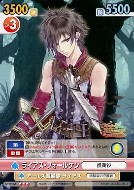 Nombre comercial en japonés: ヴィクトリースパーク/R/ブースターパック メルルのアトリエ~アーランドの錬金術士3~ MRR/067[R]:ライアス・フォールケン