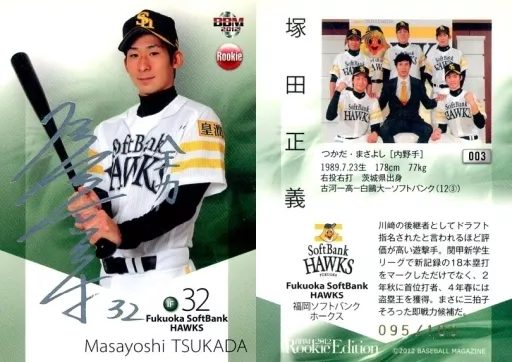 Nombre comercial en japonés: BBM/ROOKIEレギュラー/BBM 2012 Rookie Edition 003[ROOKIEレギュラー]:塚田正義(銀箔サイン入り)(/100)
