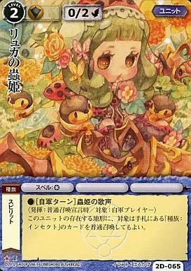 Nombre comercial en japonés: モンスターコレクション/稀/ユニット/ブースターパック ヴァローカの精霊祭 2D-065[稀]:リュカの蟲姫