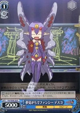 Nombre comercial en japonés: ヴァイスシュヴァルツ/R/キャラ/エクストラブースター 魔界戦記ディスガイア4 DG/SE08-38[R]:夢見がちでファンシー デスコ