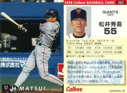 Nombre comercial en japonés: スポーツ/1998プロ野球チップス第2弾/巨人/レギュラーカード 85:松井 秀喜