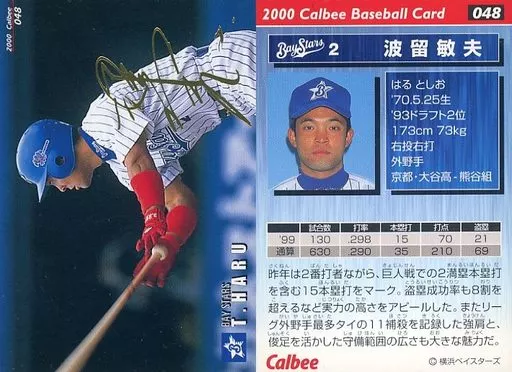 Nombre comercial en japonés: スポーツ/2000プロ野球チップス ラッキーカード特典/横浜/ゴールドサインカード 48:波留 敏夫(箔押しサイン入)