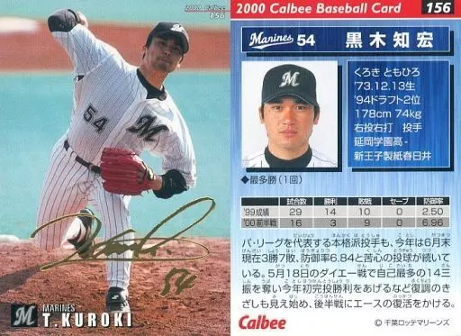 Nombre comercial en japonés: スポーツ/2000プロ野球チップス ラッキーカード特典/ロッテ/ゴールドサインカード 156:黒木 知宏(箔押しサイン入)