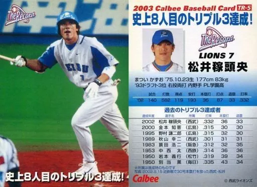 Sport/ 2003 Professional Baseball Chips First Edition / Seibu / Record Achievement Card TR-5 : Logro del triple 3 (Kazuto Matsui)