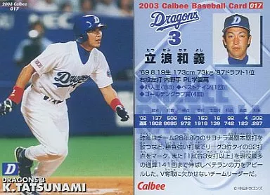 Nombre comercial en japonés: スポーツ/2003プロ野球チップス第1弾/中日/レギュラーカード 17:立浪 和義