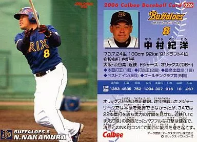 Nombre comercial en japonés: スポーツ/2006プロ野球チップス第1弾/オリックス/レギュラーカード 26:中村 紀洋