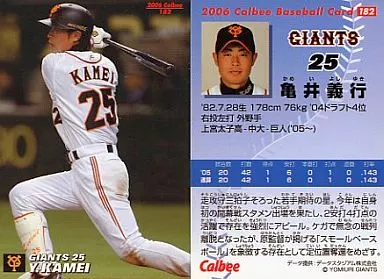 Nombre comercial en japonés: スポーツ/2006プロ野球チップス第2弾/巨人/レギュラーカード 182:亀井 義行