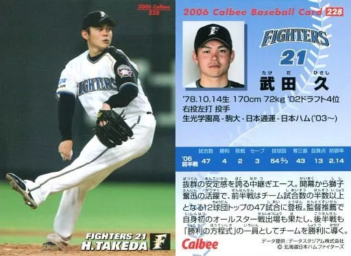 Nombre comercial en japonés: スポーツ/2006プロ野球チップス第3弾/日本ハム/レギュラーカード 228:武田 久