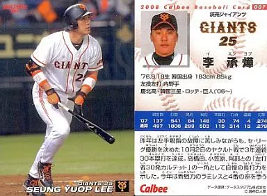 Nombre comercial en japonés: スポーツ/2008プロ野球チップス第1弾/巨人/レギュラーカード 007:李承燁