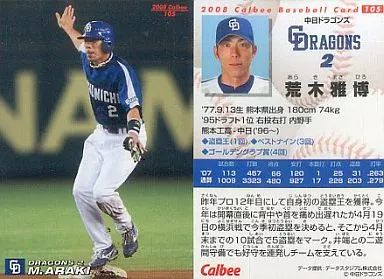 Nombre comercial en japonés: スポーツ/2008プロ野球チップス第2弾/中日/レギュラーカード 105:荒木 雅博