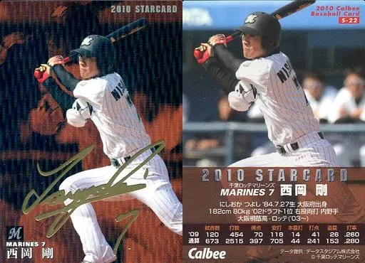 Nombre comercial en japonés: スポーツ/2010プロ野球チップス第2弾/ロッテ/スターカード S-22:西岡 剛(箔押しサイン入)