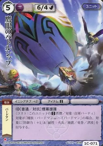 Nombre comercial en japonés: モンスターコレクション/極稀/ユニット/アルフレアの不死鳥 1C-071[極稀]:(ホロ)鷹眼のバトルシップ