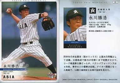 Nombre comercial en japonés: BBM/BBM 東都大学野球連盟80周年記念カード/亜大 53 : 永川 勝浩