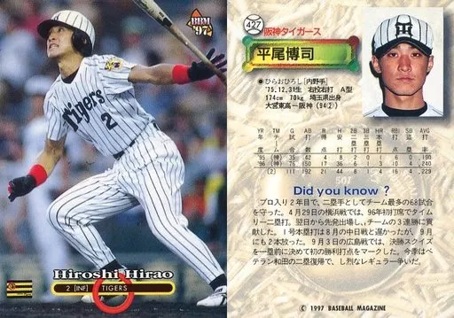 Nombre comercial en japonés: BBM/レギュラーカード/阪神タイガース/BBM’97 ベースボールカード 427 [レギュラーカード] : 平尾博司