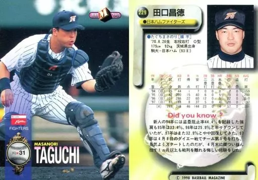 Nombre comercial en japonés: BBM/レギュラーカード/北海道日本ハムファイター/BBM’98 ベースボールカード 229 [レギュラーカード] : 田口昌徳