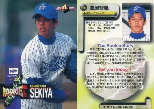 Nombre comercial en japonés: BBM/レギュラーカード/横浜ベイスターズ/BBM’98 ベースボールカード 310 [レギュラーカード] : 関屋智義