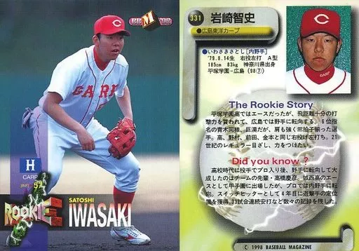 Nombre comercial en japonés: BBM/レギュラーカード/広島東洋カープ/BBM’98 ベースボールカード 331 [レギュラーカード] : 岩崎智史